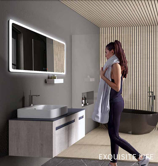 Modern Style Rectangular Time display Mirror Bathroom customized LED Backlit Defogger Smart Mirror